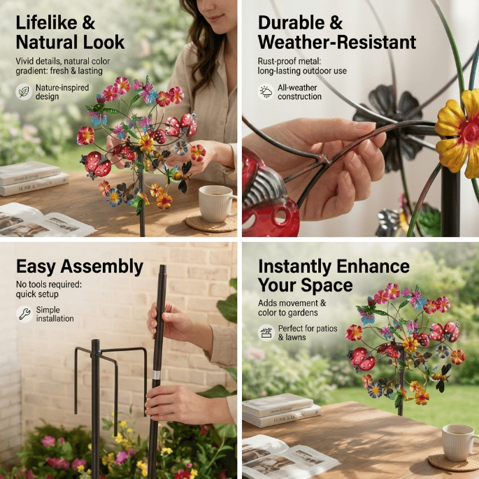Ideal for gardens, flower beds, patios, or walkways, these spinners bring a touch of magic to your outdoor décor. 🌺🏡